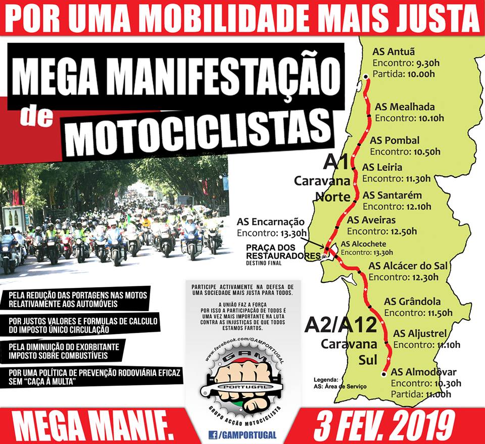 No próximo dia 03 de Fevereiro irá decorrer a manifestação motociclista nacional, organizada pelo GAM.
