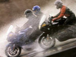 » Aderência e tracção, o comportamento da moto em pisos molhados não é o mesmo que com o piso seco. Em especial com as primeiras chuvas que formam camadas mais escorregadias dada a sujidade acumulada, levando a maiores dificuldades em termos de aderência da moto na travagem e na aceleração.